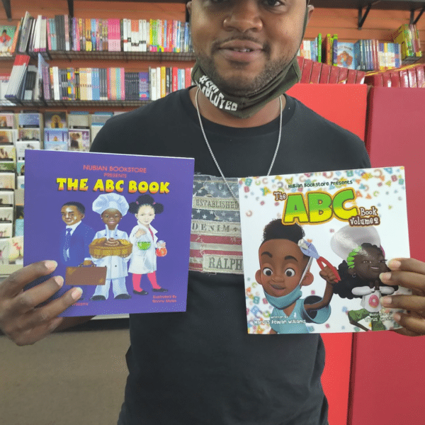 Nubian Bookstore Presents the ABC Book is a children’s picture book that teaches the alphabet. Each letter is beautifully illustrated with the description of a profession/occupation that starts with that letter.